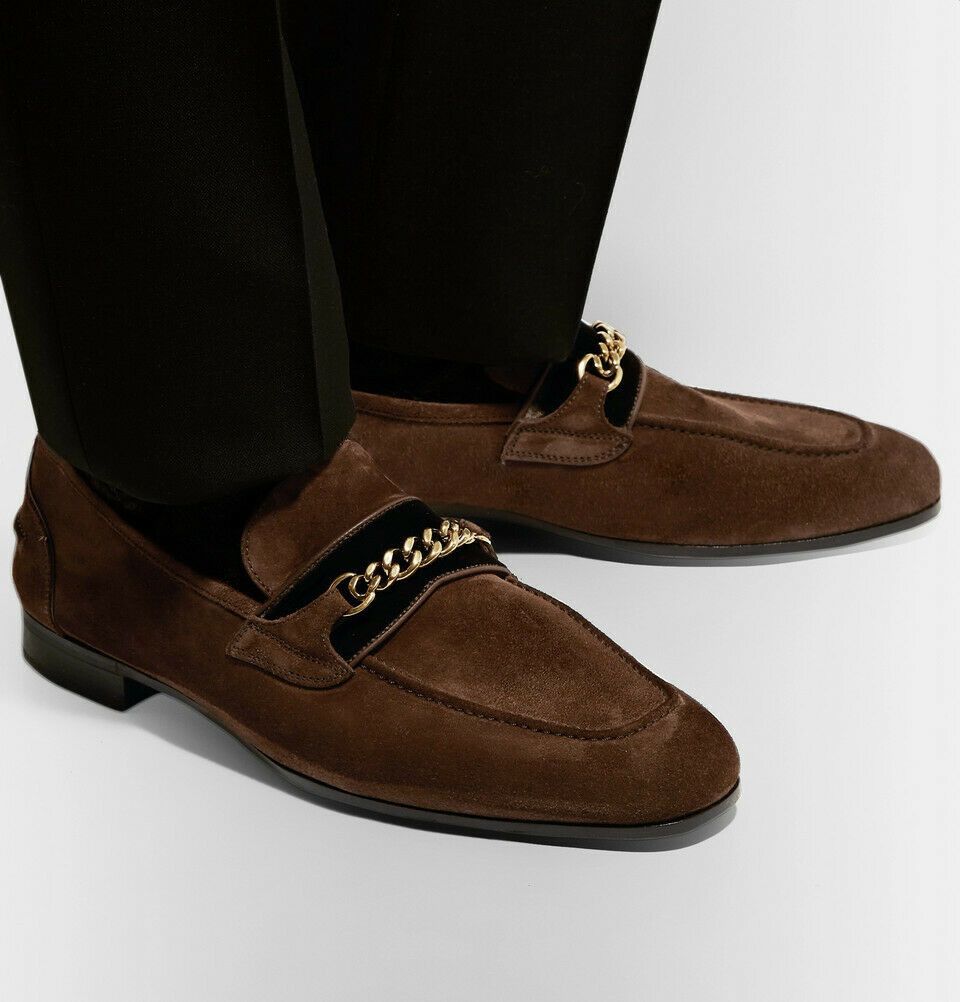 TOM FORD's 'Wilton' loafers are crafted from supple suede and detailed with gold chain links that really pop against the deep-chocolate trim. They'll work well with smart dark-wash denim or grey suiting.